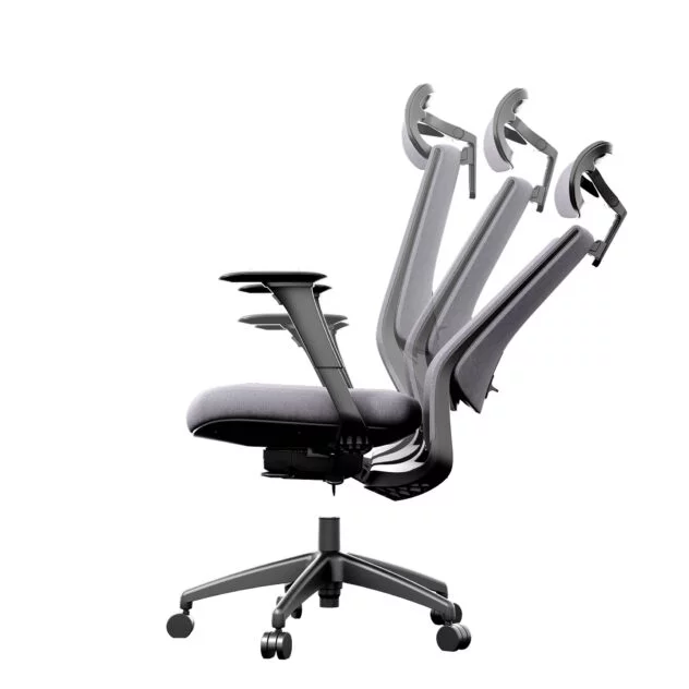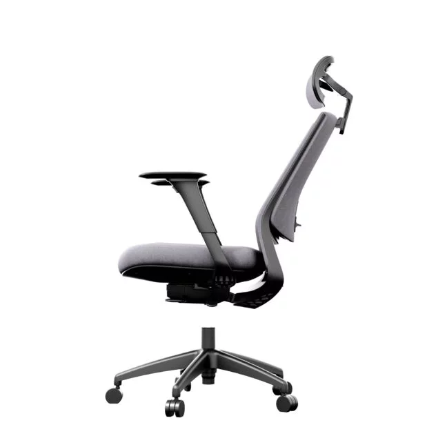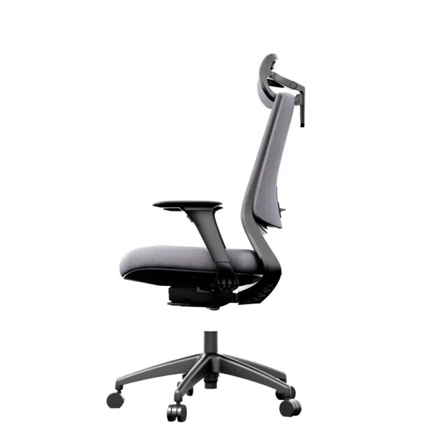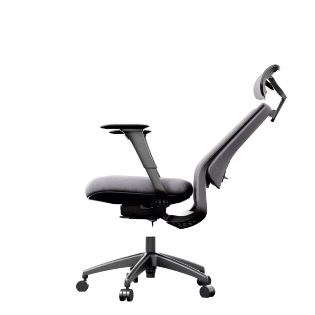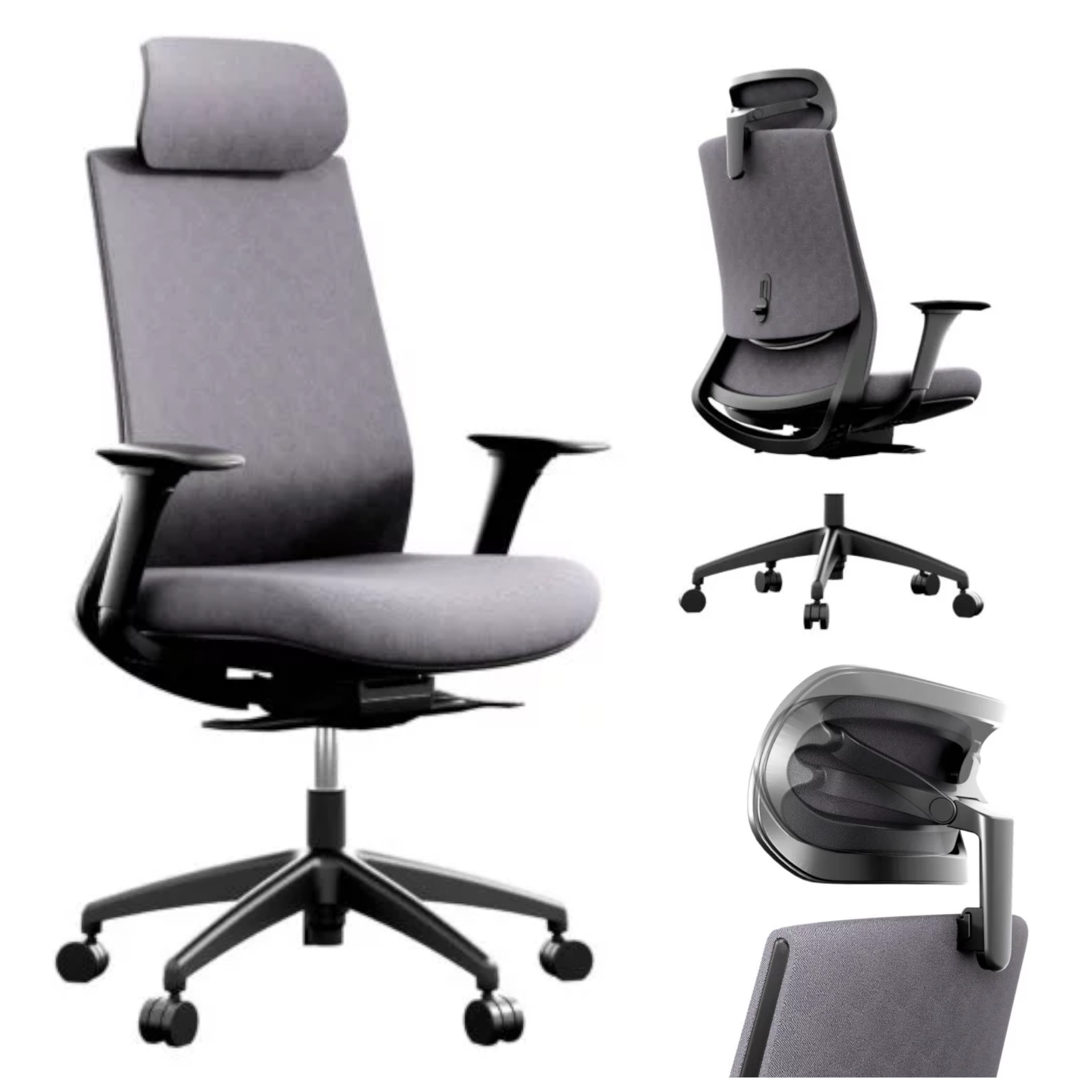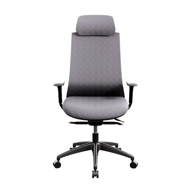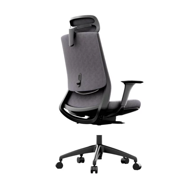 Oparcie tapicerowane trwałą tkaniną z domieszką nylonu i poliestru wspiera plecy i pozwala zachować dobrą wentylację. Zagłówek z regulacją wysokości i kąta nachylenia daje ulgę szyi i barkom. Siedzisko z formowanej pianki, pokryte odpornym materiałem, zapewnia wygodę nawet po wielu godzinach, nie tracąc swojego kształtu.