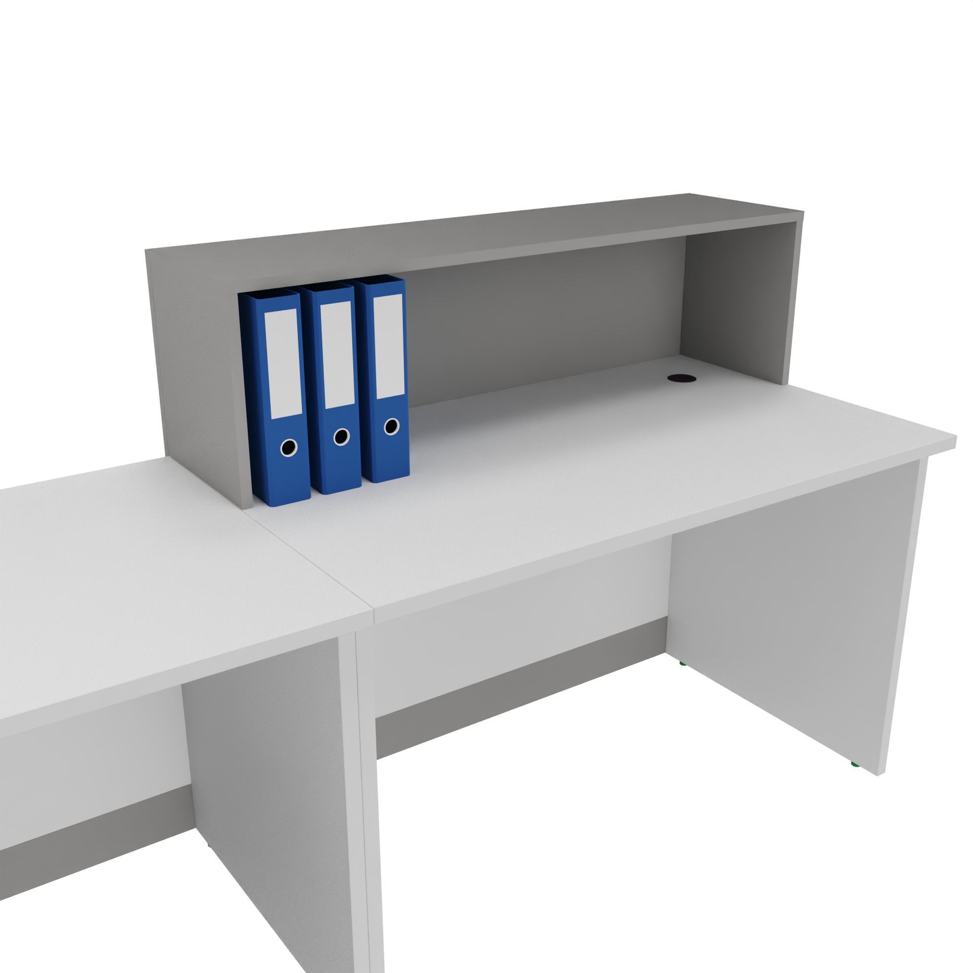 Funkcjonalna nadstawka nie tylko organizuje przestrzeń, ale również chroni dokumenty i dane przed wzrokiem osób niepowołanych. To idealne miejsce na szybkie podpisanie dokumentów przez klienta, przy zachowaniu pełnej wygody pracownika. Nadstawka może być również idealnym miejscem na podręczne segregatory.
