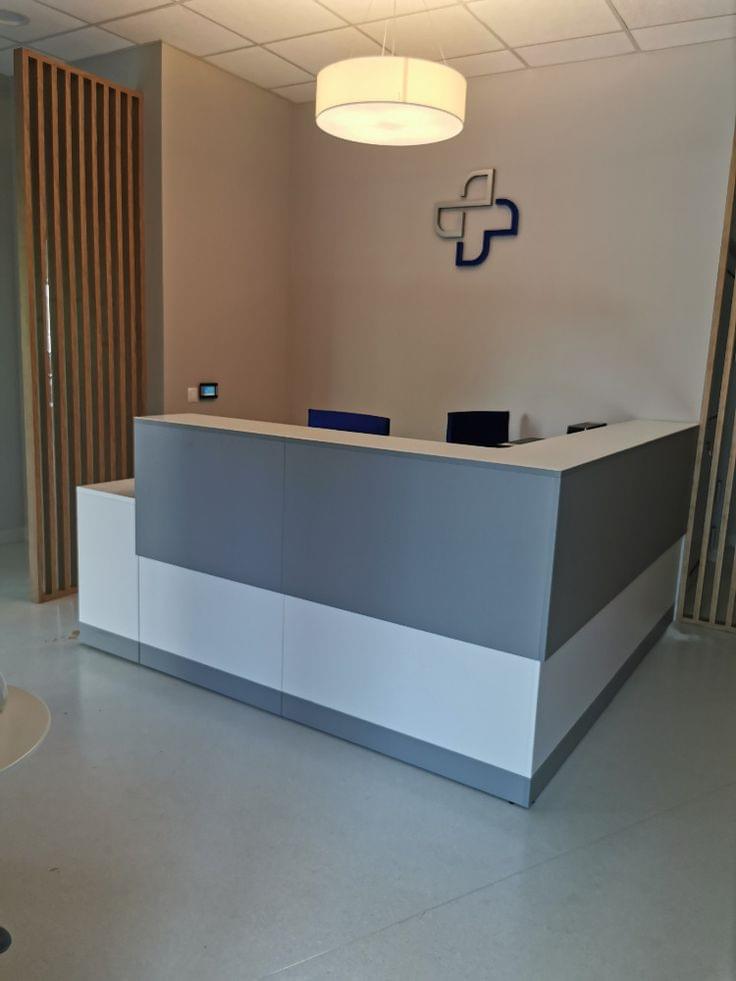 Nasza lada recepcyjna 2 m została zaprojektowana z myślą o przestrzeniach, które wymagają solidnego i reprezentacyjnego punktu obsługi. Wykończenie w kolorze dopasowanym do Twojej przestrzeni nadaje wnętrzu prestiżu, budując zaufanie gości już od progu.